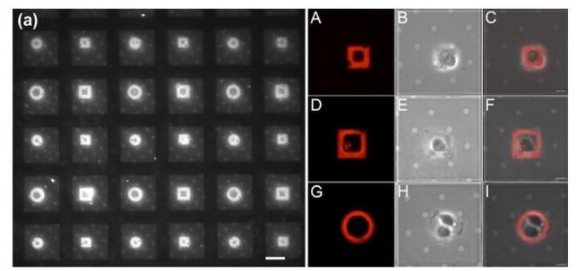 圖 3. 微圖案化可控制細(xì)胞的形態(tài)和細(xì)胞骨架結(jié)構(gòu)【 2】: