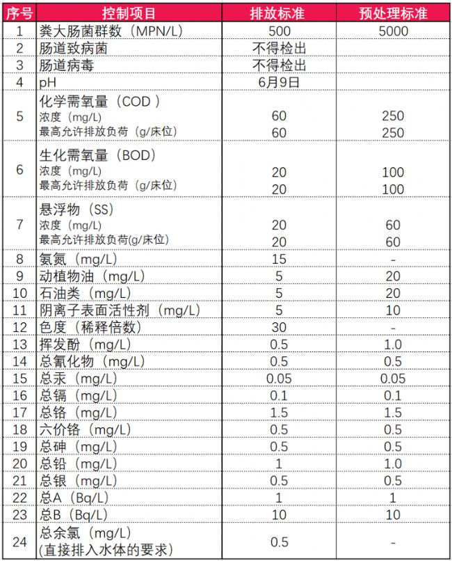 那么,國家標(biāo)準(zhǔn)對(duì)醫(yī)療廢水的處理要求是怎樣的呢?先讓我們看一組我國醫(yī)療廢水排放標(biāo)準(zhǔn)(GB 18466-2005)中所涉及的參數(shù)(如下圖所示):
