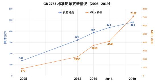 2019版標準規(guī)定了483種農(nóng)藥在356種(類)食品中7107項殘留限量,與2016版相比新增農(nóng)藥品種50個、殘留限量2967項,基本涵蓋了我國已登記農(nóng)藥品種和居民日常消費的主要農(nóng)產(chǎn)品。