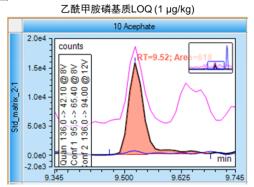 圖7. 乙酰甲胺磷基質(zhì)LOQ(1 μg/kg)