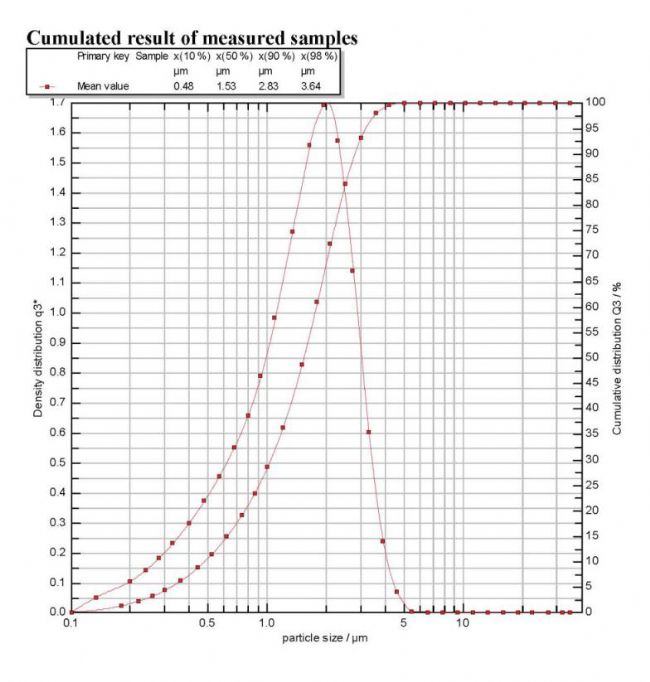 超微粉氣流粉碎的粒徑結(jié)果及分布