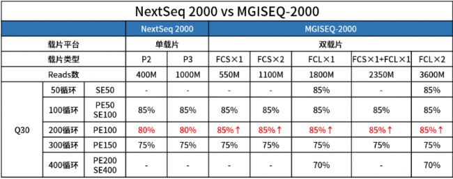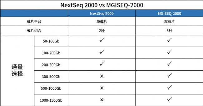 表1 NextSeq 2000 與 MGISEQ-2000的通量選擇