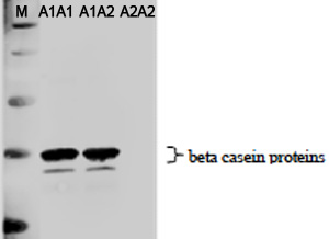 用雞抗A1酪蛋白抗體(0.1 µg / mL)對牛奶進行WB分析。用1/4000稀釋度的驢抗雞二抗。C-1781-100對A1蛋白具有特異性,不能識別A2蛋白。
