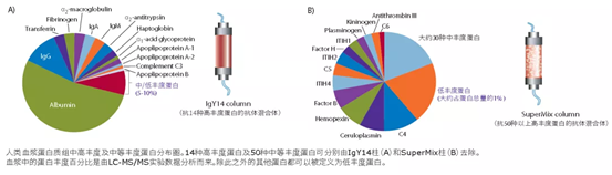 體液樣本在biomarker的發(fā)現(xiàn)中有重要意義,雖然目前還沒有通過質(zhì)譜篩選或鑒定的方法發(fā)現(xiàn)的biomarker,但科學(xué)家們正在嘗試改良低豐度蛋白的富集和鑒定效率。這就需要我們能高效地去除體液樣本中的高豐度蛋白,如Albumin,IgG,transferrin等。相比市面上只能去除2種、12種的高豐度蛋白試劑,Seppro系列可去除多達(dá)50多種的中高豐度蛋白,富集到占總蛋白1%的低豐度蛋白。除了