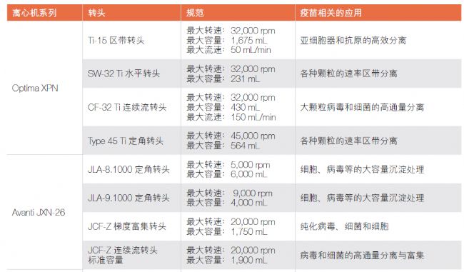 圖4:用于疫苗生產(chǎn)的離心機(jī)和轉(zhuǎn)頭推薦