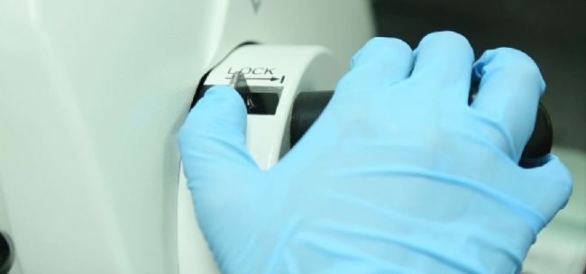 切片工作完成后,鎖定手輪取下蠟塊,取出刀片置于刀盒的廢刀槽中。