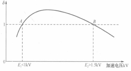 對于絕緣材料或者導電性不好的材料,接地電流 Isc 幾乎為零,若要樣品不放電(dQ/dt 等于 0),則 δ 必須等于 1,即入射電子的電流等于背散射于二次電子的電流之和。