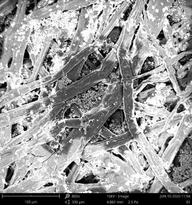 在樣品表面鍍上一層導電膜不僅能夠改善樣品的導電性,而且能夠提高樣品信號量。圖 2 是紙張的掃描電鏡照片,圖 2 (a) 是沒有鍍膜的樣品照片,圖 2 (b) 是鍍膜后的樣品照片。從圖中可以明顯看出兩者的差別。鍍膜也有其缺點,鍍膜會在樣品表面覆蓋一層薄膜,掩蓋樣品表面真實形貌。