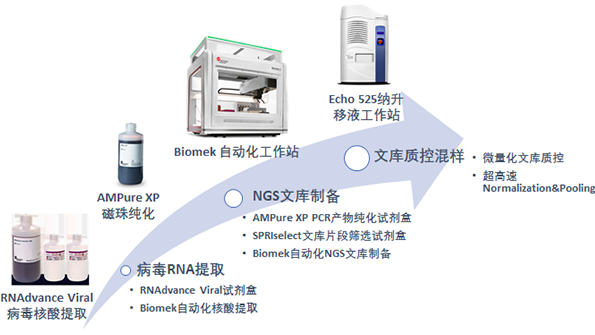 正如全面開展的核酸檢測(cè),基因測(cè)序工具也將進(jìn)一步轉(zhuǎn)變?yōu)榭箵粢咔榈某R?guī)武器。針對(duì)新冠病毒基因組測(cè)序,小貝特別制定從新型冠狀病毒核酸提取試劑盒到自動(dòng)化NGS測(cè)序文庫制備的高通量基因測(cè)序方案,為奮戰(zhàn)在一線的你備齊克“敵”利刃。
