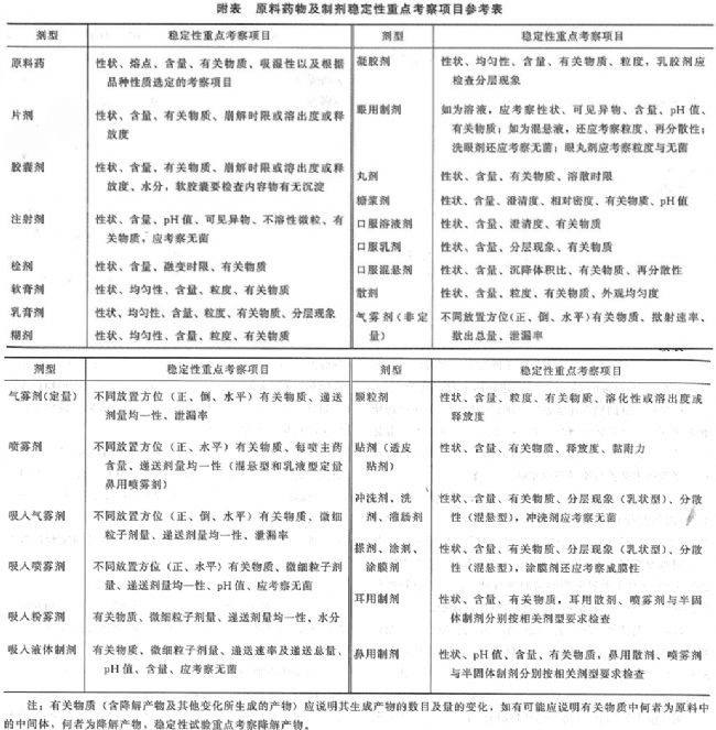 制劑的穩(wěn)定性受制于多種因素,需要充分考慮各種因素的影響,因此最后的制劑重點考察項目參考表有了較大幅度的擴充。