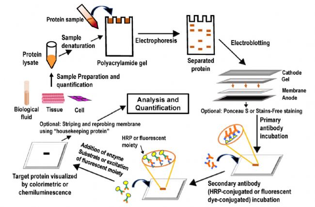 Western Blot 是一種用于檢測(cè)蛋白質(zhì)以及蛋白質(zhì)翻譯后修飾的常用方法,可以對(duì)簡(jiǎn)單或復(fù)雜生物樣品中的目標(biāo)蛋白質(zhì)進(jìn)行半定量或定量分析。其操作步驟包括: