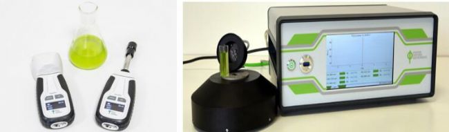 圖3. 左:Aquapen手持式藻類葉綠素?zé)晒鈨x;右:FL6000雙調(diào)制式葉綠素?zé)晒鉁y(cè)量系統(tǒng)