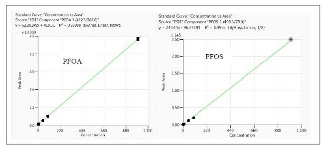 PFOA和PFOS化合物標準曲線