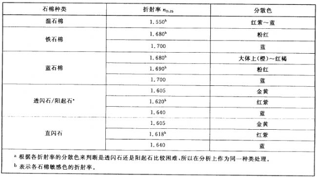 <不同石棉對(duì)應(yīng)的不同折率浸漬液>