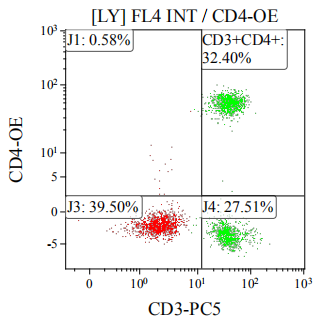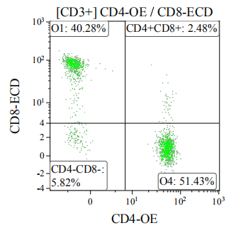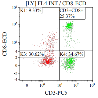 每個月做一次淋巴細(xì)胞亞群,所用儀器為貝克曼庫爾特公司的 Navios 流式細(xì)胞儀,分析軟件為 Kaluza 流式數(shù)據(jù)分析軟件,結(jié)果如下: