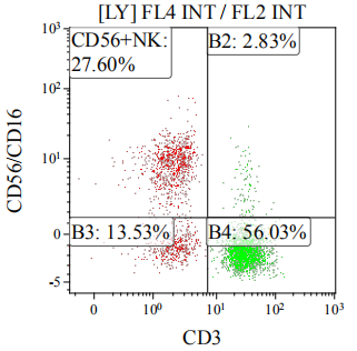 - 免疫功能檢查:查淋巴細(xì)胞亞群 NK 細(xì)胞百分比升高。