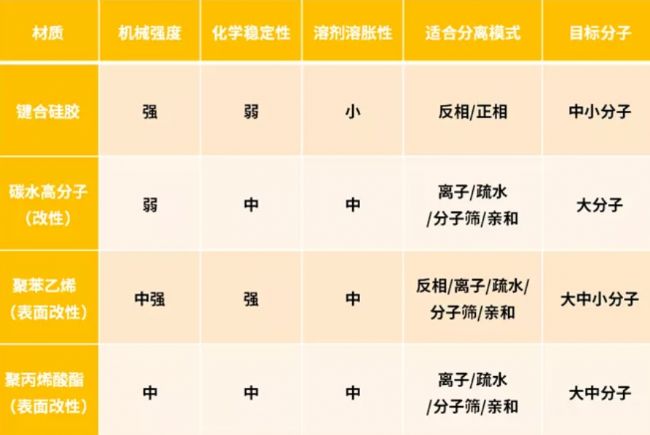 用于多肽分析和分離純化的液相色譜填料主要基質(zhì)性質(zhì)對(duì)比