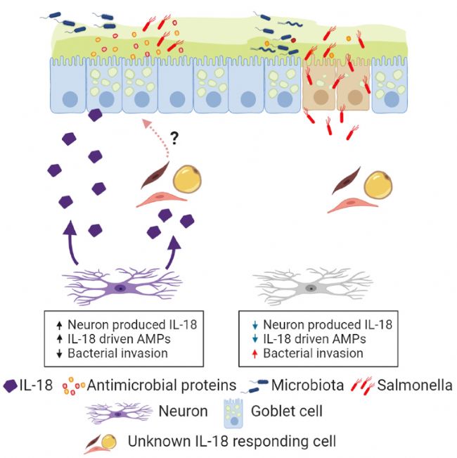 總之,這些數(shù)據(jù)表明腸神經(jīng)元是結(jié)腸中IL-18的新產(chǎn)生者。研究還結(jié)合了單細(xì)胞轉(zhuǎn)錄組技術(shù)來探究ENS來源IL-18的功能以及作用方式。
