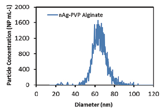圖1:在6ppm海藻酸鹽溶液中的Ag的粒徑分布