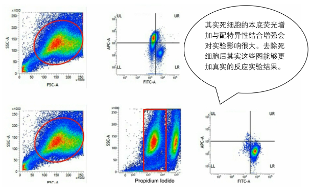 但是,如果是在做胞內(nèi)染色的時(shí)候,死細(xì)胞對(duì)于實(shí)驗(yàn)結(jié)果的影響更大,但是普通的PI或者7AAD ,有會(huì)因?yàn)榧?xì)胞需要固定,破膜而使所有細(xì)胞都是陽(yáng)性。這個(gè)時(shí)候我們就需要使用到通用型死活細(xì)胞染料,這種染料不管是胞內(nèi)染色還是胞膜染色都能很好的區(qū)分死活細(xì)胞。