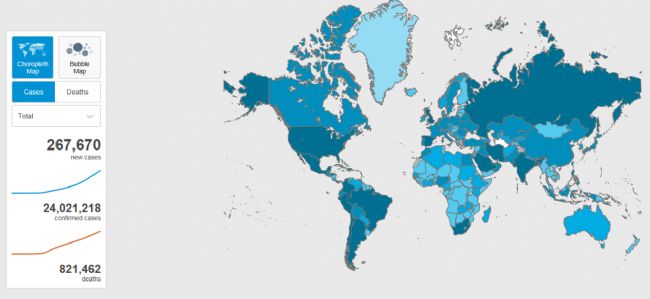 2020年,似乎來得更艱難一點。從去年12月份開始,新冠肺炎疫情(COVID-19)就像龍卷風一樣席卷全球,當前已在217個國家地區(qū)蔓延,全球確診超2402萬例,死亡破82萬例。新冠肺炎疫情構(gòu)成大流行的威脅“已經(jīng)變得非常真實”。