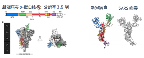 2月15日,德克薩斯大學(xué)奧斯汀分校McLellan團隊獲得了新冠病毒S蛋白三維結(jié)構(gòu),分辨率達3.5埃,確定了該S蛋白是由S1和S2組成的三聚體。RBD是受體結(jié)合區(qū)域,存在多種構(gòu)象狀態(tài)。與SARS病毒S蛋白比較,兩者是不同的,但整體上仍具有較高的相似度。