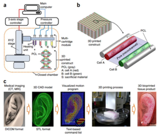 Kang,H.-W., Lee, et al. “A 3D bioprinting system to produce human-scale tissueconstructs with structural integrity.” Nature Biotechnology 34(3) (2016):312–319.