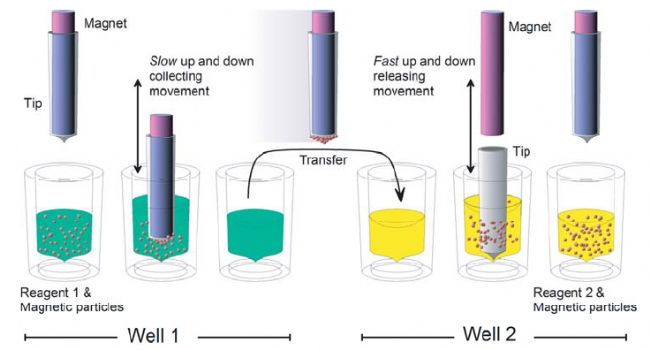 KingFisher全自動(dòng)核酸提取儀,基于專利的轉(zhuǎn)移磁珠的KingFisher技術(shù)(專利號(hào):US6447729,US6448092),無需離心或轉(zhuǎn)移液體,無有機(jī)溶劑污染和氣溶膠產(chǎn)生,專利磁頭配套專用耗材,保證磁珠只富集在磁棒底部,而不是整個(gè)磁棒周身,杜絕交叉污染。