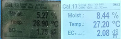 測(cè)量過(guò)程:測(cè)量時(shí)將SONO-M2傳感器傳感器探針插入桶中距桶底5cm以上,提起桶再迅速放下5次,壓實(shí)樣品,選用標(biāo)準(zhǔn)曲線