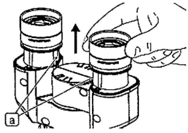 1、使用小平頭螺絲刀擰松10倍目鏡的固定螺絲a,取下目鏡。
