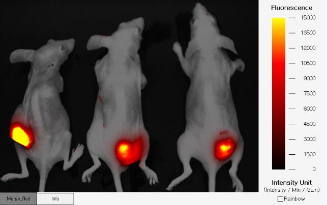 相比生物發(fā)光成像,成像前無需注射熒光素酶底物。有合適的激發(fā)光源照射,就可發(fā)出特定波長的發(fā)射光。只要熒光基團穩(wěn)定,就可實現(xiàn)隨時激發(fā)、發(fā)光、檢測。