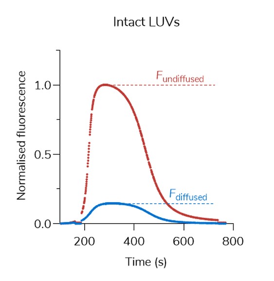 沒有加入SMA時,完整LUVs的熒光信號比(SR),SR=Fdiffused/Fundiffused,為~0.15,為低擴散水平。