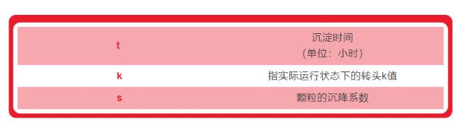已知一個(gè)轉(zhuǎn)頭k值和沉淀所需要的時(shí)間,如果用另一個(gè)轉(zhuǎn)頭來(lái)沉淀同樣的顆粒,可以用以下公式來(lái)計(jì)算需要沉淀的時(shí)間: