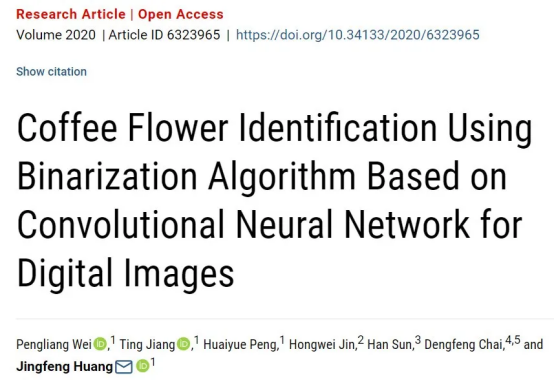 2020年10月,Plant Phenomics刊發(fā)了浙江大學(xué)遙感與信息技術(shù)應(yīng)用研究所題為Coffee Flower Identification Using Binarization Algorithm Based on Convolutional Neural Network for Digital Images的研究論文,本文介紹了一種基于地面遙感延時(shí)圖像的咖啡花識(shí)別方法。為了實(shí)現(xiàn)種植園區(qū)中咖啡花的精準(zhǔn)監(jiān)測(cè),本文采用基于地面遙感的高時(shí)空分辨率延時(shí)圖像,并將二值化算法和卷積神經(jīng)網(wǎng)絡(luò)相結(jié)合,進(jìn)而提取出圖像中所包含的咖啡花信息。