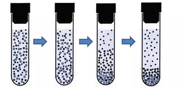 以上即是離心的主要原理,液體中的顆粒在重力的作用下以一定的速率向下移動,顆粒移動的速率往往與顆粒的大小與密度相關(guān),這樣就出現(xiàn)了顆粒的沉降運動。當然前提是顆粒的密度必須大于液體的密度。