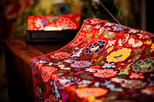 在紡織時(shí),將金線或捻金線纏于織梭上,作為緯線的一種,織入織物,形成金華燦爛的花紋,便成為貴重的織金錦緞羅紗。在明清時(shí)代,更產(chǎn)生一種織用“遍地金”錦緞的風(fēng)氣,緯底以金線織滿,在金光閃閃的金線底上,以各色絲線織顯五彩花紋。