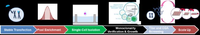 細(xì)胞株開發(fā)是執(zhí)行生物藥研發(fā)的關(guān)鍵步驟,主要通過細(xì)胞培養(yǎng)及轉(zhuǎn)染,細(xì)胞株單克隆化及單克隆源性鑒定, 蛋白表達(dá)及結(jié)構(gòu)特征篩選及鑒定,獲得潛在的細(xì)胞株。