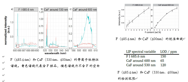 CaF2分子譜線對(duì)F元素進(jìn)行定性定量分析,得到的LOD遠(yuǎn)優(yōu)于F(685.6nm)譜線;
