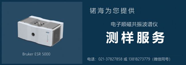 EPR是檢測(cè)和研究含有未成對(duì)電子的順磁性物質(zhì)的一種波譜學(xué)技術(shù)。由于這種技術(shù)可以直接檢測(cè)顆粒物或液相中的未成對(duì)電子,通過對(duì)順磁譜圖的分析,以此得到物質(zhì)的分子結(jié)構(gòu)和狀態(tài)等信息,可用于定性和定量分析。在此研究中的EPR實(shí)驗(yàn)結(jié)果均使用了EPR技術(shù)(德國(guó)Bruker EMXnano)去證實(shí)。該儀器有著高靈敏性、高穩(wěn)定性、操作簡(jiǎn)便及檢測(cè)高效的優(yōu)點(diǎn)。
