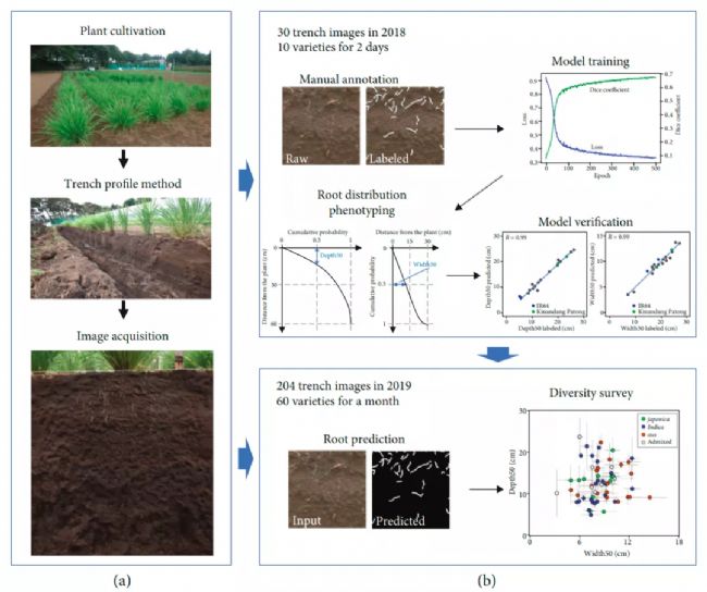 Plant Phenomics在線發(fā)表了日本國(guó)立農(nóng)業(yè)與食品研究組織作物科學(xué)研究所S. Teramoto和Y. Uga的題為A Deep Learning-Based Phenotypic Analysis of Rice Root Distribution from Field Images的研究論文。研究作者將基于CNN的語(yǔ)義分割應(yīng)用于溝槽輪廓圖像,以估計(jì)輪廓壁上的根分布情況。