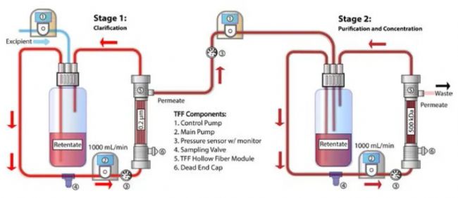 來自美國俄亥俄州立大學(xué)的研究人員在2020年5月的《Biotechnology & Bioengineering》雜志上發(fā)表了題為“Comprehensive Characterization of Tense and Relaxed State Glutaraldehyde Polymerized Bovine Hemoglobin as a Function of Cross-link Density”的文章。文中,研究人員使用Repligen 50、100、500kD以及0.2μm的中空纖維組件對合成的不同狀態(tài)的聚合牛血紅蛋白(PolybHb)進行濃縮以及洗濾換液。