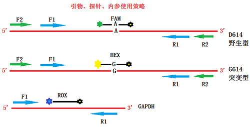 圖A:針對2019-CoV的S基因的D614G突變使用的引物、探針策略圖示
