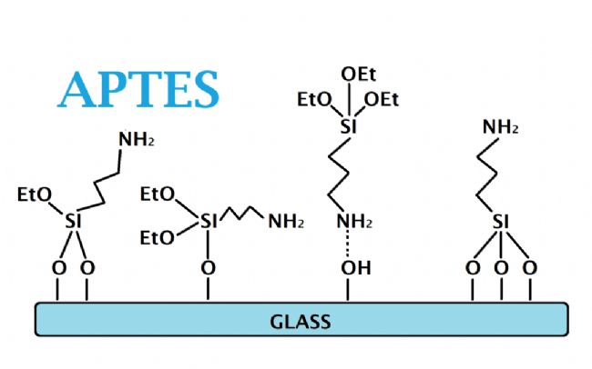 (3-氨基丙基)三乙氧基硅烷(APTES)是一種氨基硅烷,最初是作為親和層析的吸附劑開(kāi)發(fā)的,現(xiàn)已發(fā)展成為細(xì)胞研究和微流控器件制造中改善表面化學(xué)的通用工具。在等離子清洗之后,處理過(guò)的材料的表面具有高的自由能,沒(méi)有污染物,并且被親水性官能團(tuán)修飾。在很長(zhǎng)一段時(shí)間內(nèi),這種高能狀態(tài)會(huì)隨著分子的重新排列而減弱,重新回到主體中,并最終呈現(xiàn)出較低的能量結(jié)構(gòu)。隨后用APTE處理交換親水性、胺攜帶分子的表面官能團(tuán)。這使得長(zhǎng)期的研究,其中表面親水性的處理材料是保持。 APTES表面功能化的兩個(gè)主要應(yīng)用是熱塑性微流控器件的制備和適合細(xì)胞研究的微環(huán)境的開(kāi)發(fā)。聚碳酸酯(PC)、聚甲基丙烯酸甲酯(PMMA)和聚苯乙烯(PS)等熱塑性塑料是微流控器件的理想材料,因?yàn)樗鼈兛梢酝ㄟ^(guò)熱成型以高速度和低成本生產(chǎn)。在等離子體清洗和APTES處理后,熱塑性塑料被粘合到PDMS上。這些微流控器件保持其親水性多年。在細(xì)胞研究中,APTES是一個(gè)基本的表面基團(tuán),可以用來(lái)引入必要的細(xì)胞外基質(zhì)成分,如膠原蛋白、戊二醛和細(xì)胞特異性蛋白質(zhì)。