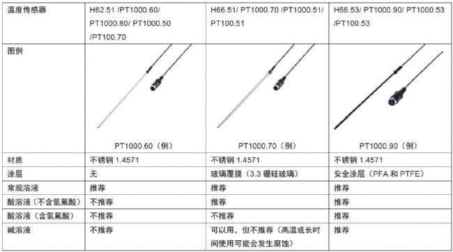 1. 帶安全涂層(PFA和PTFE)的溫度傳感器最高使用溫度為260℃。