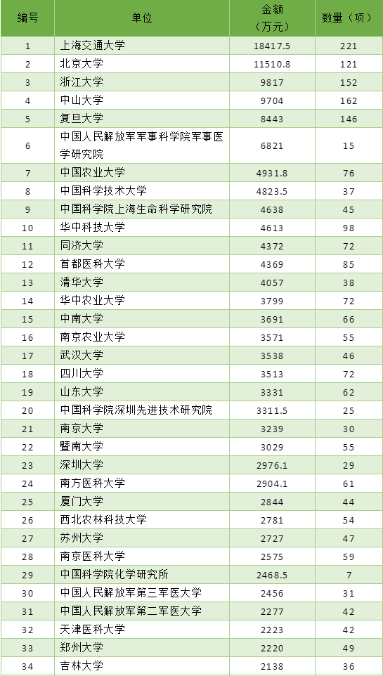 2020年國自然四大組學各單位資助金額前100名見下表:
