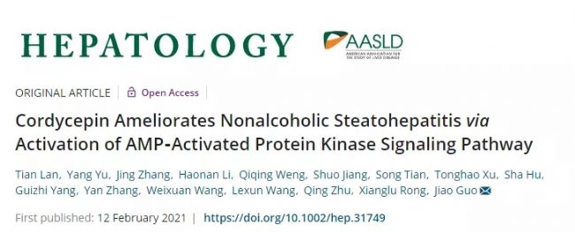 Lan T , Yu Y , Zhang J , et al. Cordycepin ameliorates nonalcoholic steatohepatitis via activation of AMP‐Activated Protein Kinase signaling pathway[J]. Hepatology. 2021.