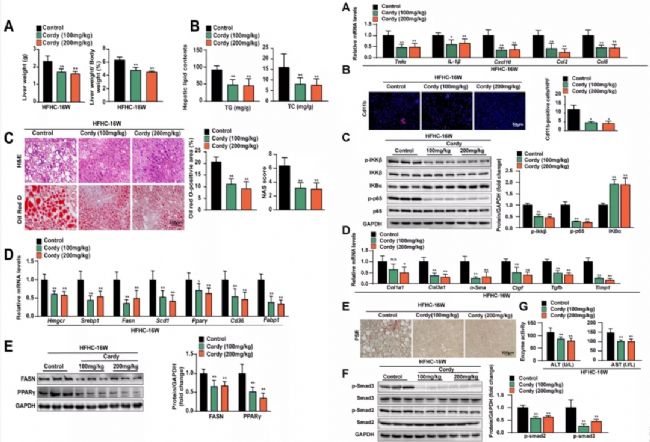 蟲草素可改善HFHC飲食引起的肝脂肪變性、炎癥和纖維化