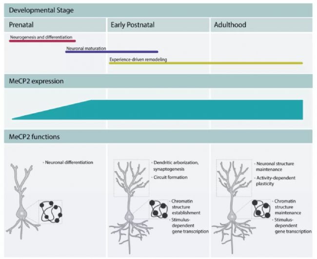 圖3. MeCP2調(diào)控大腦發(fā)育,維持成熟神經(jīng)元的功能。