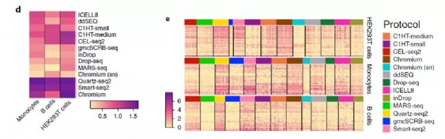 文章中使用的13種scRNA-seq方法包括 CEL-seq2、MARS-seq、Quartz-seq2、gmcSCRB-seq、Smart-seq2、ddSEQ、ICELL8、C1HT-small、C1HT-medium、Chromium、Chromium (sn)、Drop-seq、inDrop。這也是大家耳熟能詳?shù)膯渭?xì)胞測序方法。