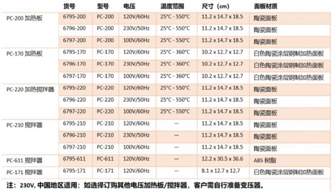 除了數(shù)字顯示加熱板及磁力攪拌器外,康寧還可提供非數(shù)字顯示的加熱板及磁力攪拌器可供選擇,如PC-200、PC-170、PC-220、PC-210、PC-611、PC-171等型號的加熱板及磁力攪拌器。如下表: